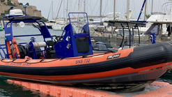 Semi Rigide "Guardiolinu" - SNS 732 : Semi-rigide équipé de 2 moteurs de 115 Cv, venu remplacer le SNS 684 fin juin 2023 par échange de moyens nautiques avec nos amis de la station d'Ajaccio. Le SNS 732 offrant de meilleures capacités d'interventions sur notre zone d'interventions très étendue.