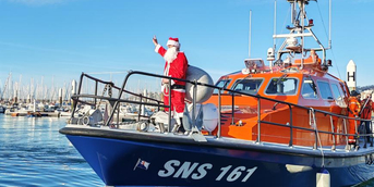 Le samedi 13 décembre, le père Noël est venu faire du repé­rage au Havre et il a choisi d’ar­ri­ver avec la Vedette SNS 161 « Président Pierre Huby » de la SNSM.