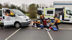 - Poste de secours terrestre avec un ou plusieurs véhicules de premiers secours à personnes.