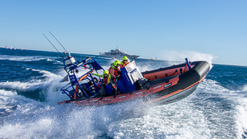 Nous avons la capacité d’intervenir plus rapidement avec un effectif d’équipage réduit, au plus près des côtes et des requérants. Il peut également permettre de transporter une équipe médicale sur zone. D'une t'aille de 7,50m, avec deux moteurs de 115 cv chacun et peut atteindre une vitesse de 35 nœuds.